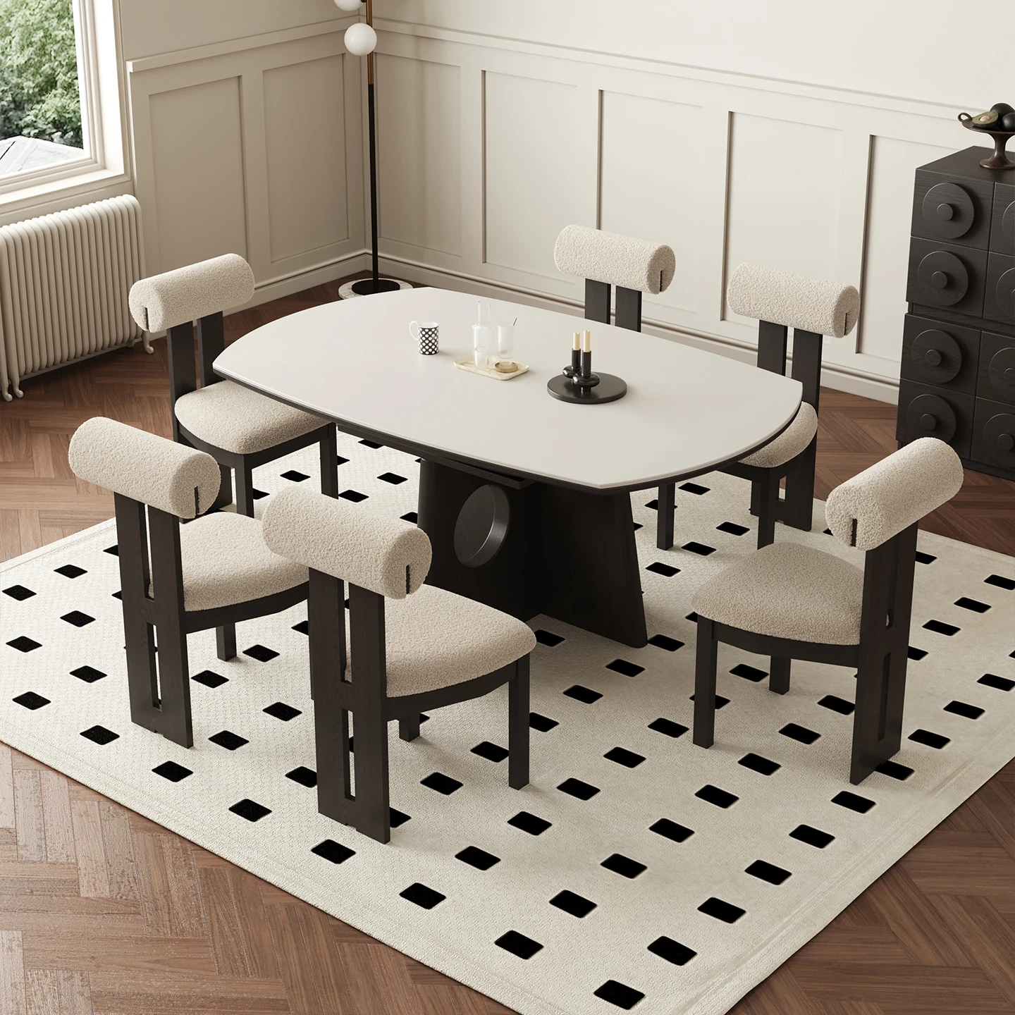 高級デリフォンの岩板ダイニングテーブル - 家庭用・小型住宅にもぴったり!クリーミーなホワイトで現代的なシンプルデザインの長方形テーブル&チェアセット。おしゃれな食卓で特別なひとときを演出!