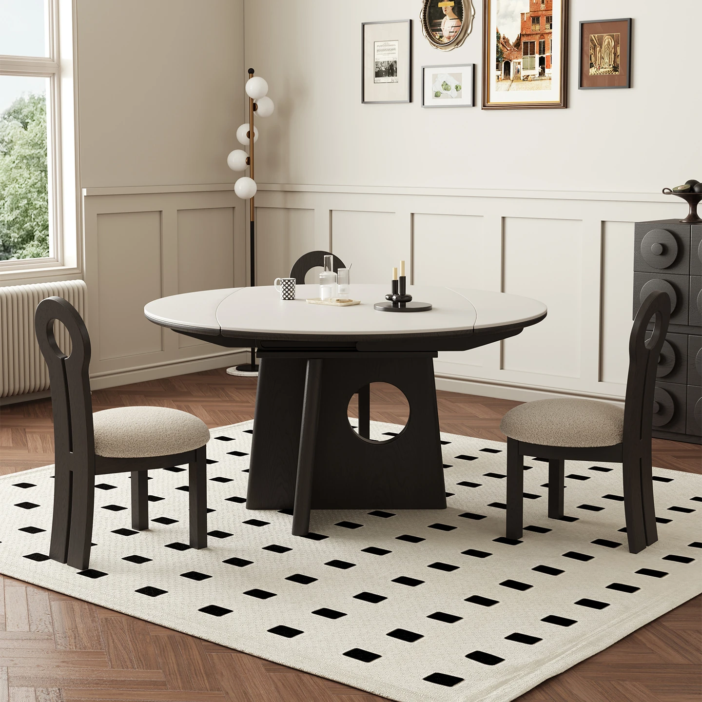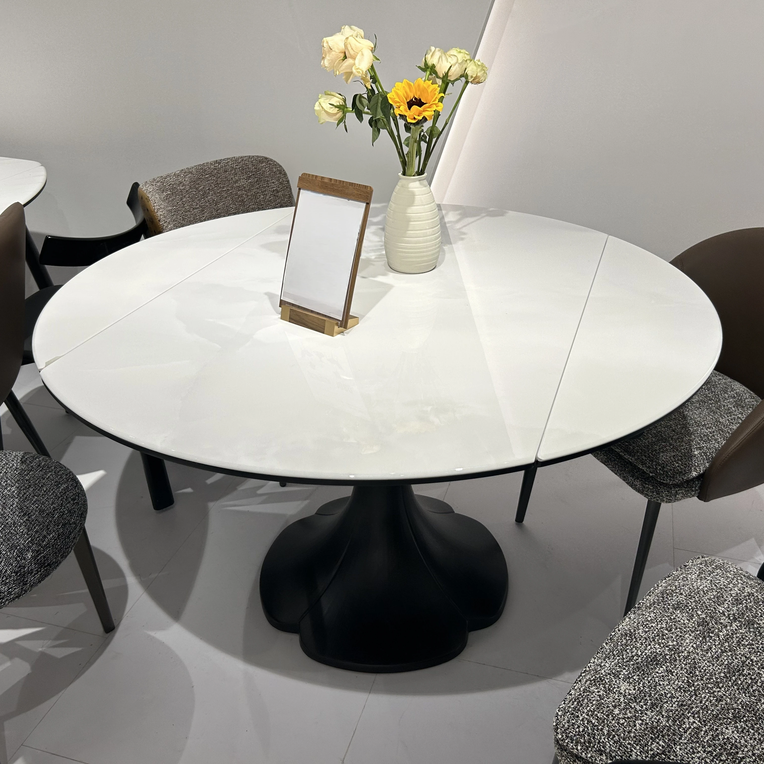 イタリアンラグジュアリーのミニマルデザイン!伸縮式の岩板円形ダイニングテーブルセット2025年新作、コンパクトなお部屋にぴったりの食卓。家族や友人との食事をより特別に演出します。