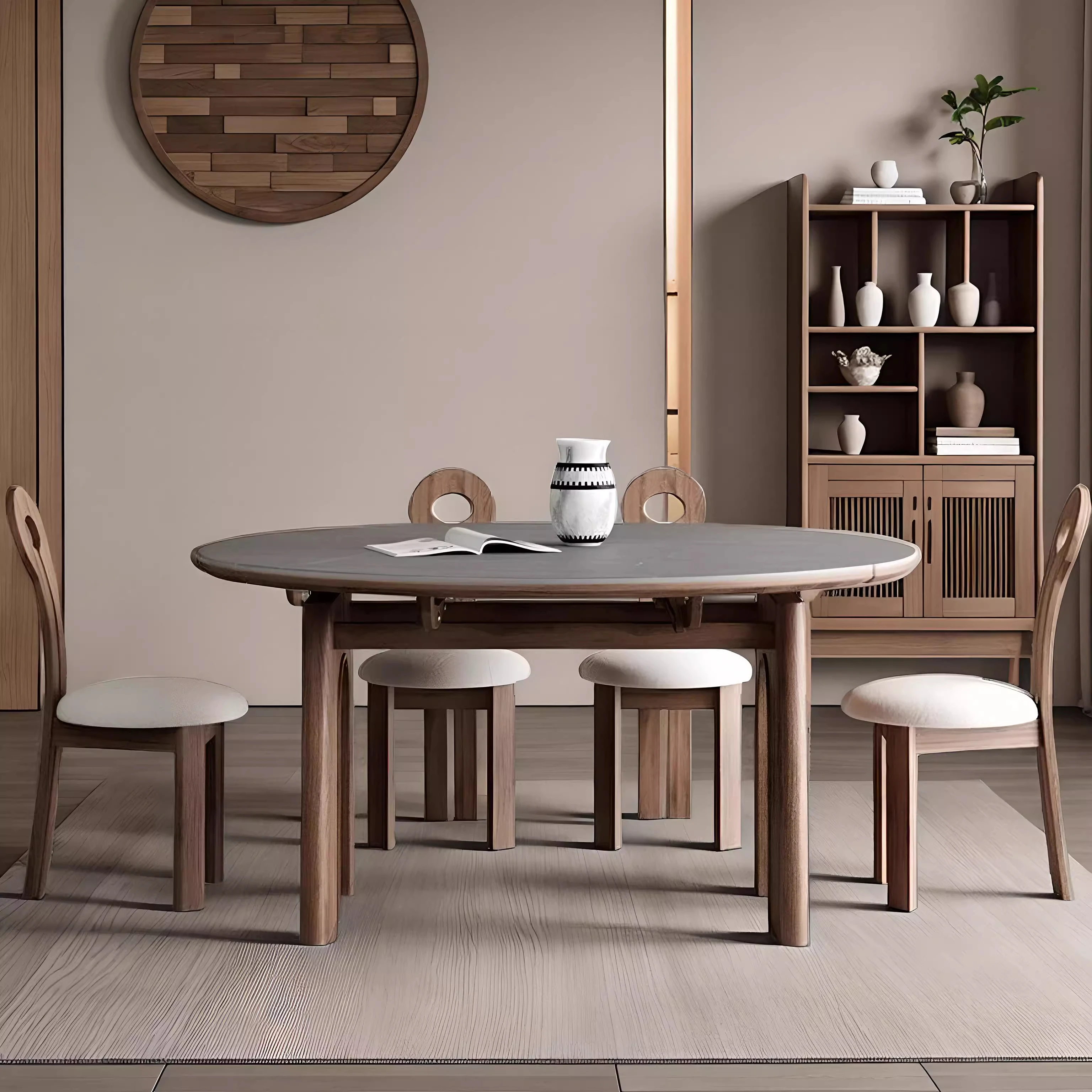 伸縮可能な実木岩板ダイニングテーブル|北欧風シンプルモダンデザイン|小型住宅に最適な折りたたみ式テーブルとチェアのコンビネーション|自然な木の色合いで温かみをプラス!