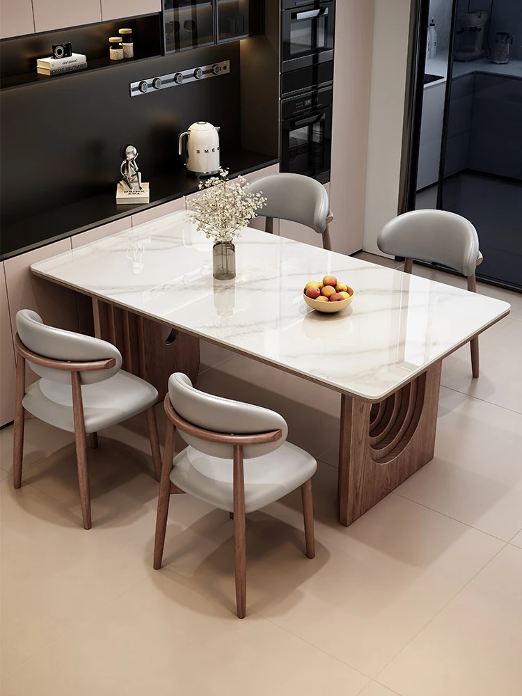 新作!高級感あふれる岩板ダイニングテーブル - シンプルでスタイリッシュなデザイン、中古風の魅力を持つ小型リビング向けテーブル。おしゃれな食卓で特別なひとときを!